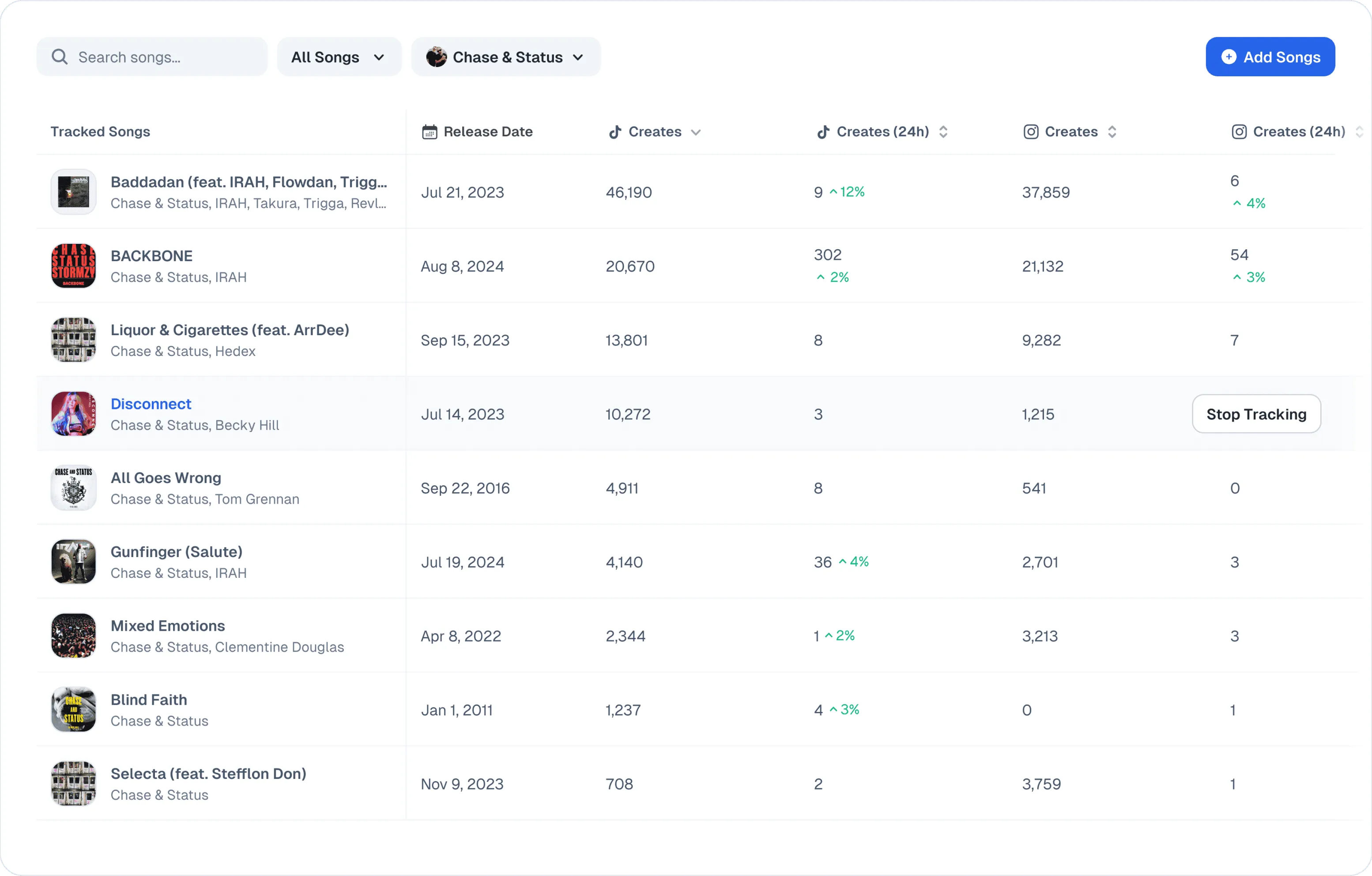 Discover impactful creators, super fans and user-generated content for any song — whether it’s your artist’s, another artist’s, or even an unreleased song.